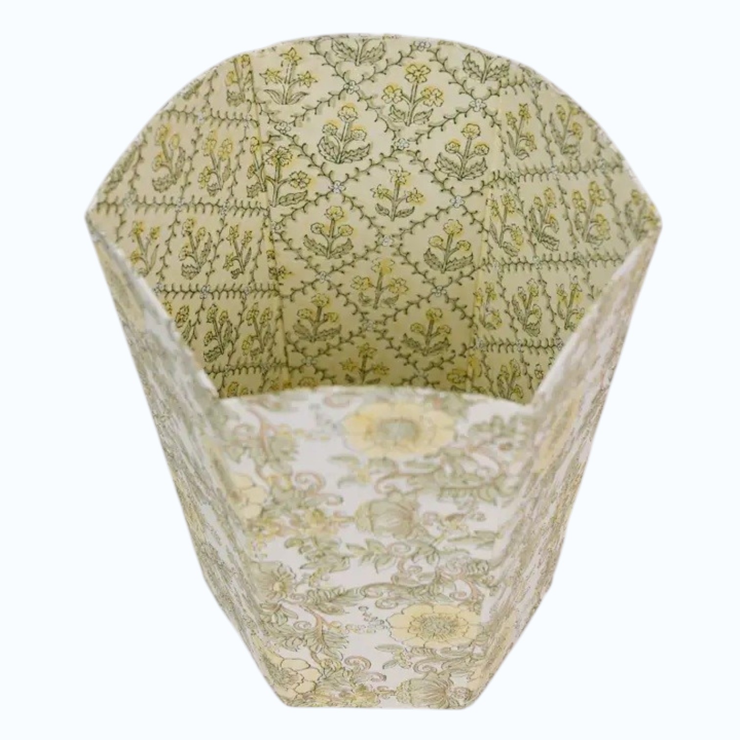 Each basket is artisan-crafted from 100% recycled cotton rag paper, using traditional hand block printing techniques passed down through generations. The delicate floral pattern brings a soft, decorative touch, with subtle gold floral highlights making it as much a design feature as it is a functional piece.