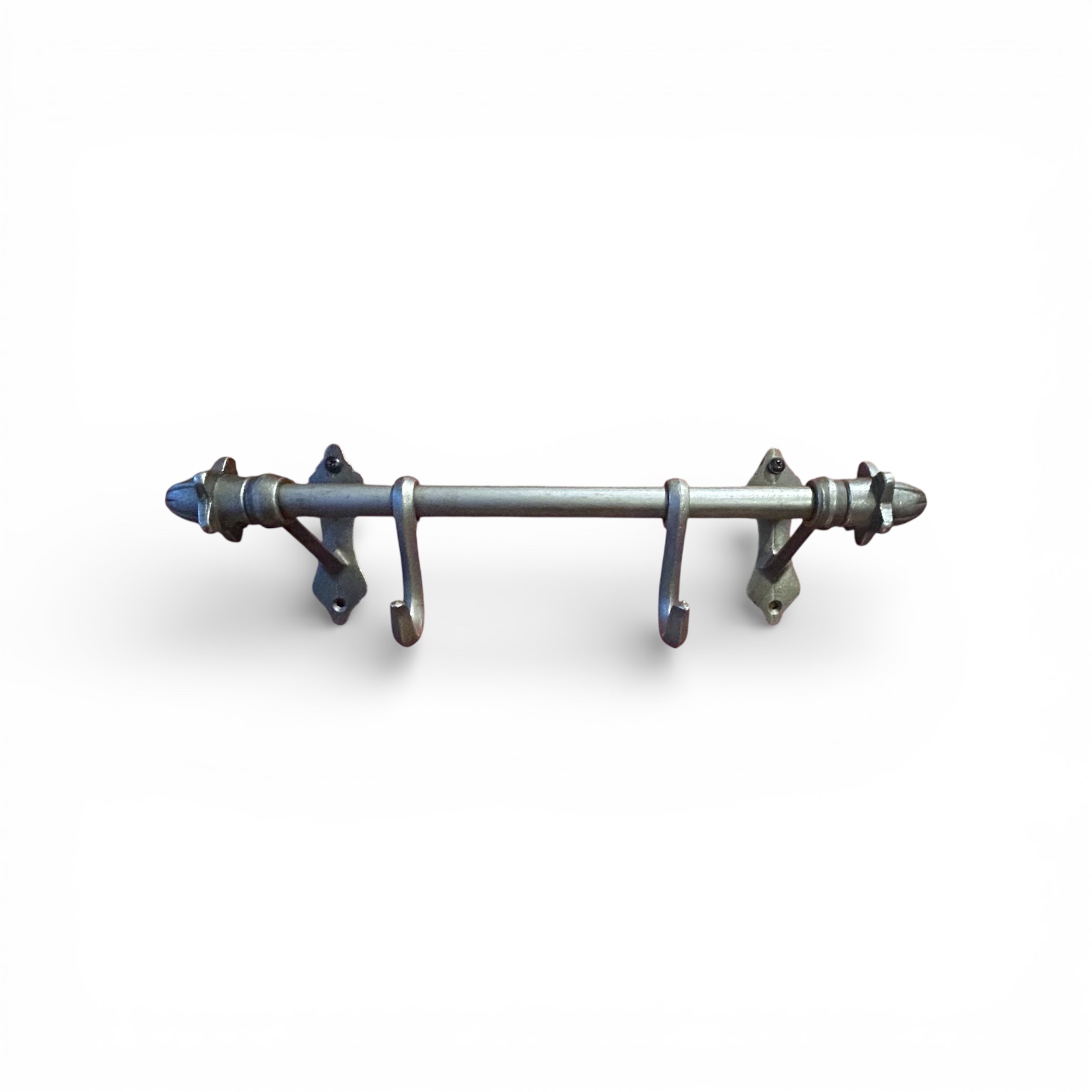 Cast Antique Iron Hook Rail – 2 Hooks with Finial Ends – 340mm