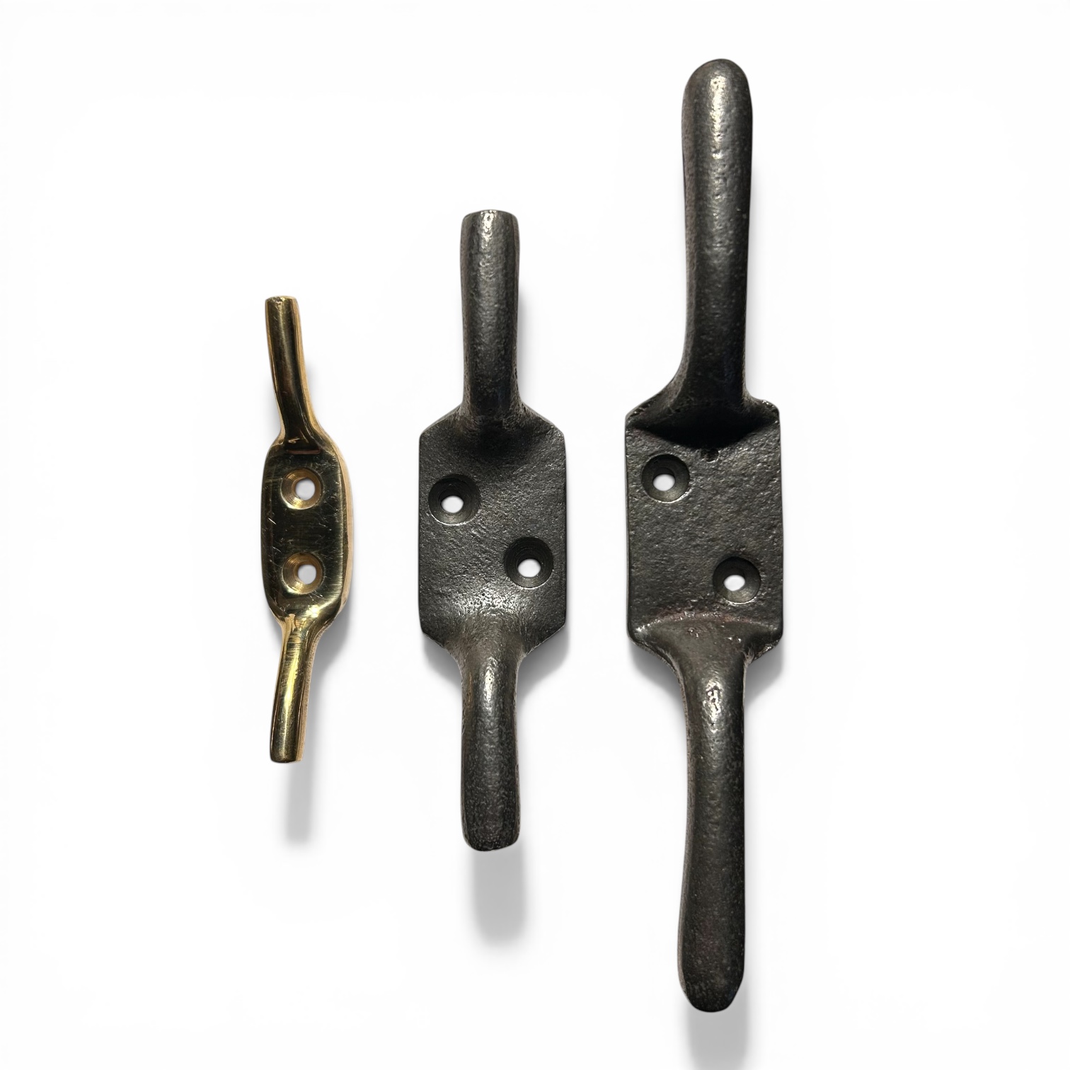 A simple yet highly practical cast iron cleat, ideal for managing loose cords in traditional interiors. This sturdy double-hook design allows you to neatly secure cords for ceiling airers, sash windows, blinds, or pulley systems.