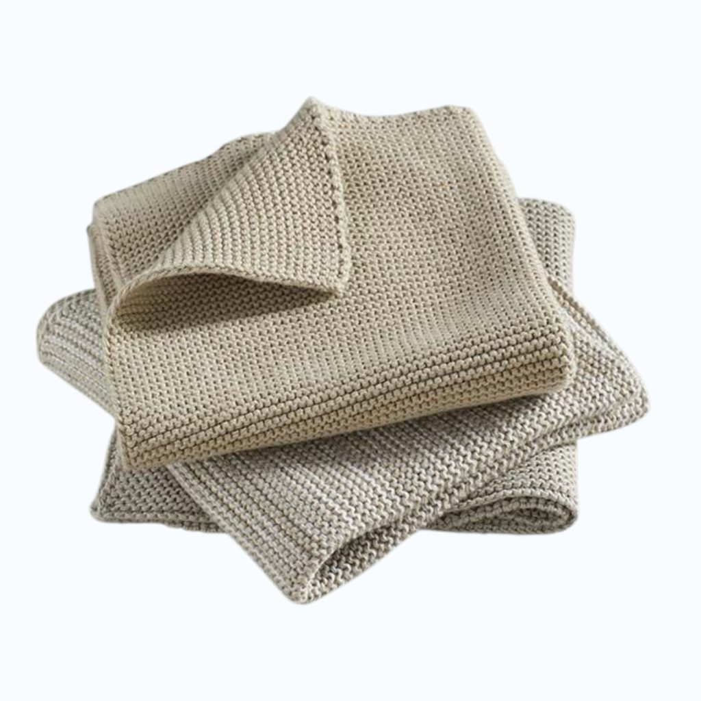 Add a practical yet stylish touch to your kitchen with this set of knitted cotton dishcloths. Soft, durable and highly absorbent, these cloths are perfect for everyday cleaning, washing up, or wiping surfaces.