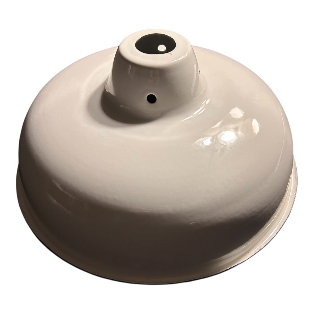 This enamel dome shade delivers clean lines and timeless industrial style in a simple, well-balanced form. Finished in glossy white with a contrasting black rim, it brings a crisp, understated look that suits both modern and traditional interiors. The classic dome shape works especially well in kitchens, hallways, utility rooms, or over tables and counters.