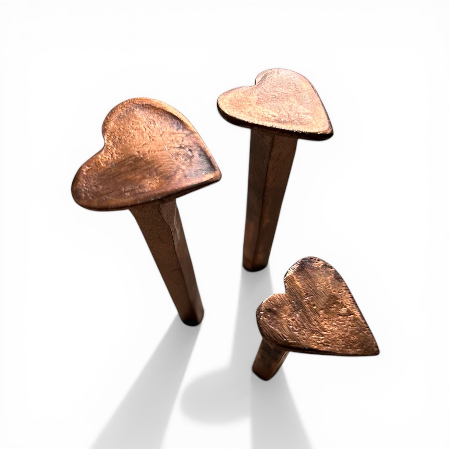 Heart Head Nails – Antique Copper Finish -Set of 3