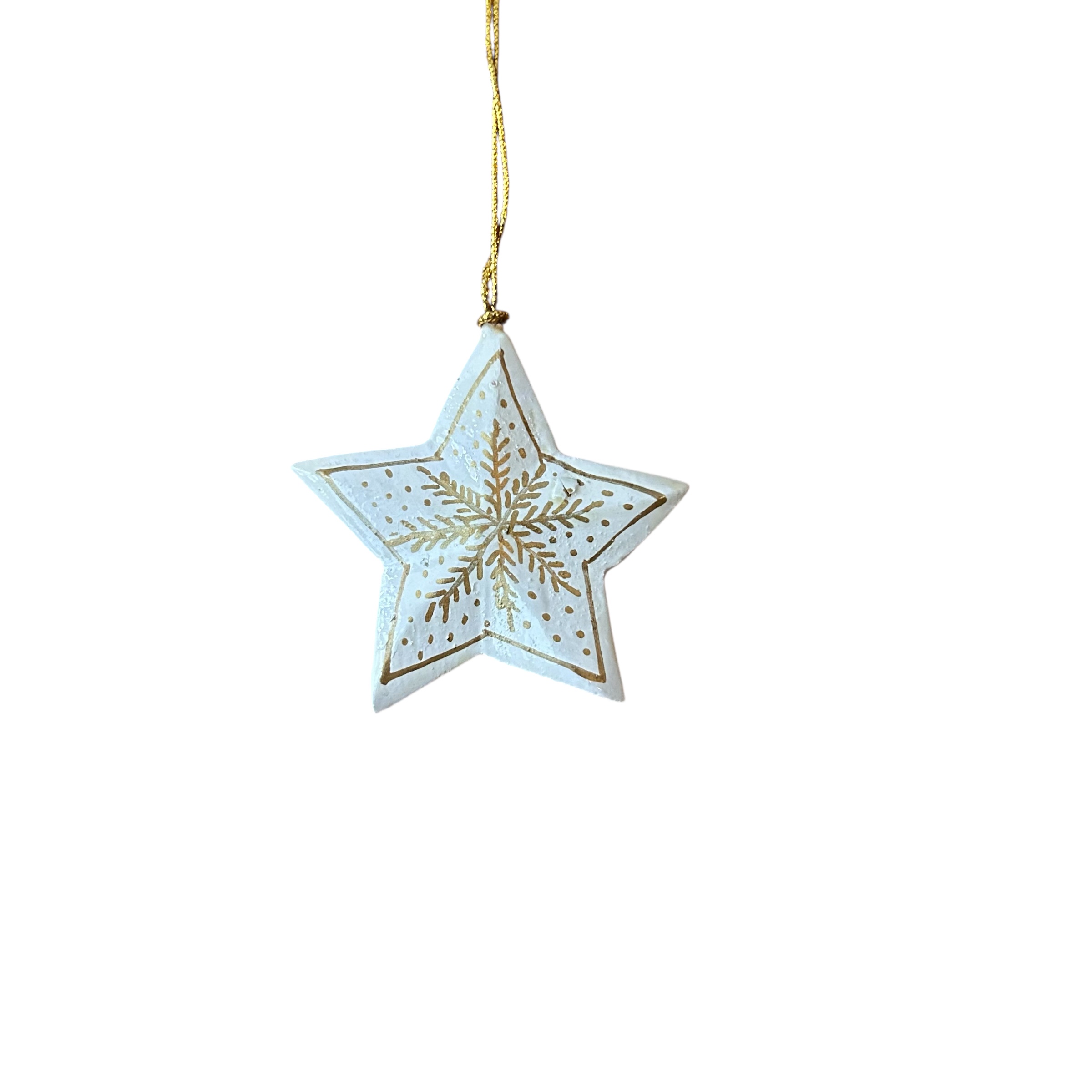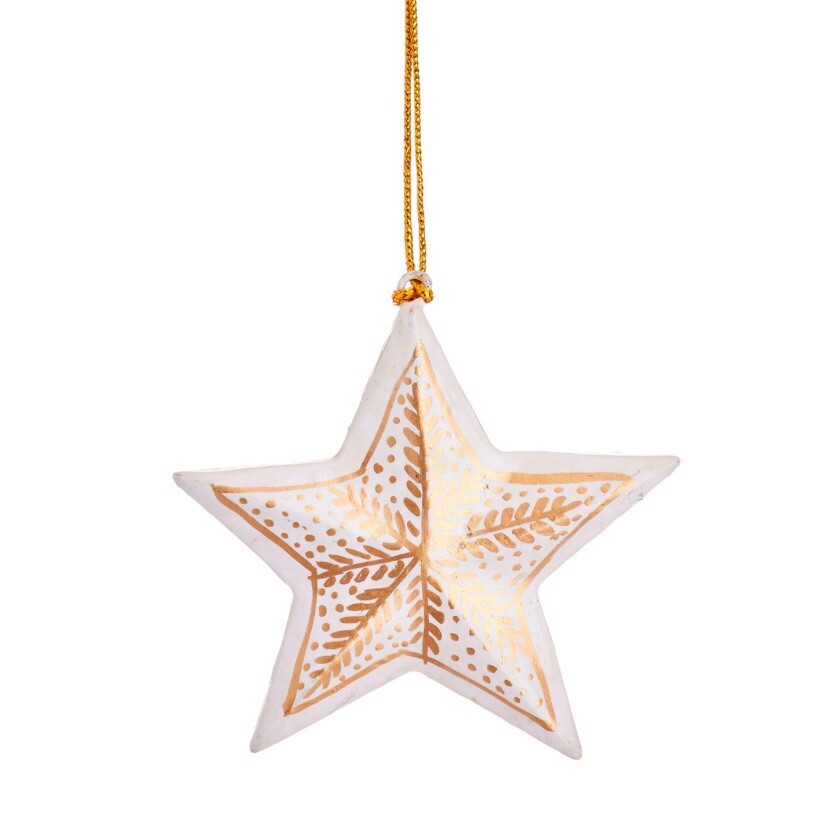 Kashmiri White and Gold Star Wooden Hanging Decoration