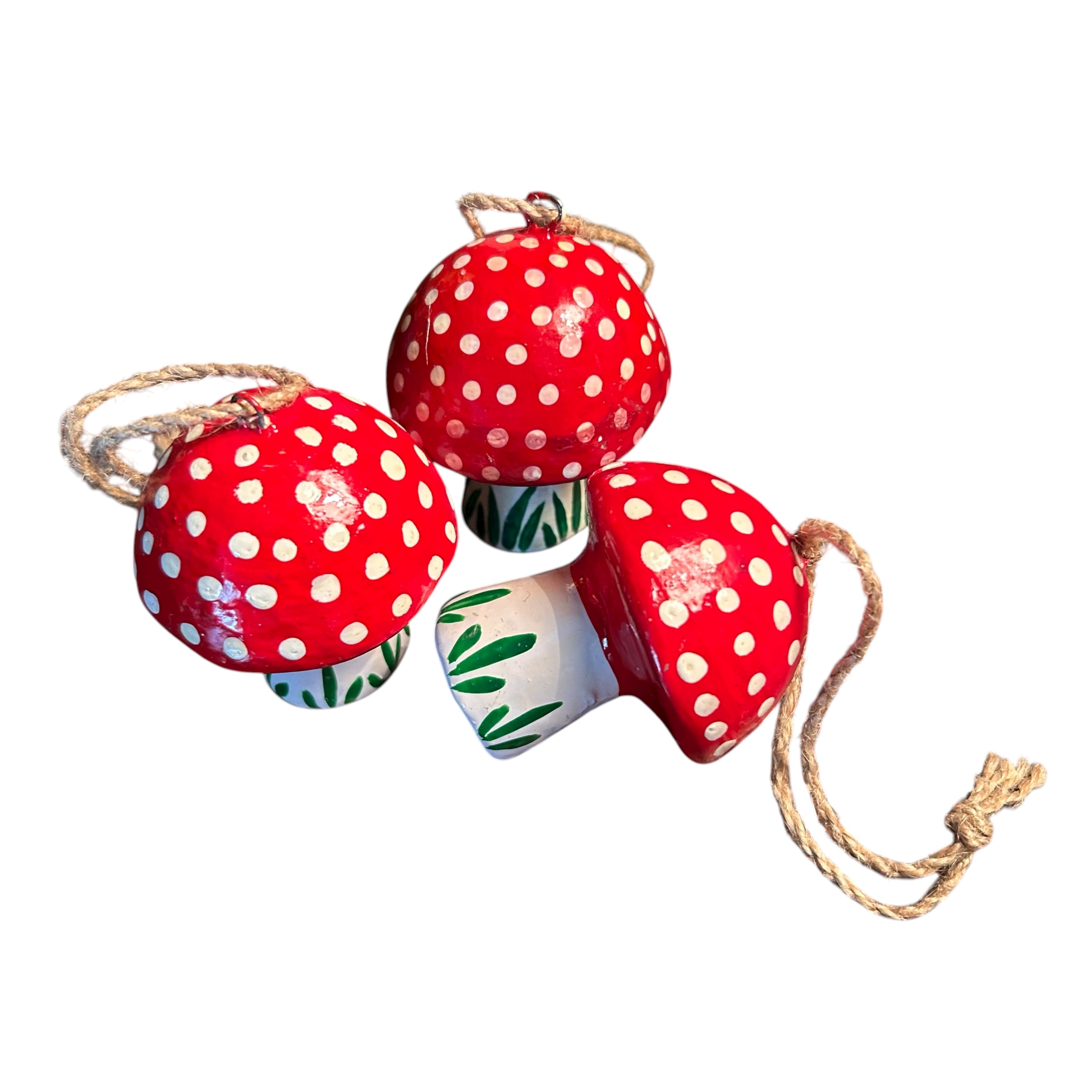 Bright, colourful, and full of woodland charm, this delightful hand-painted toadstool ornament makes a playful addition to your festive décor. Crafted from papier mâché, it features a vibrant red mushroom cap with white spots, a white stalk, and hand-painted green grass blades at the base for extra detail.