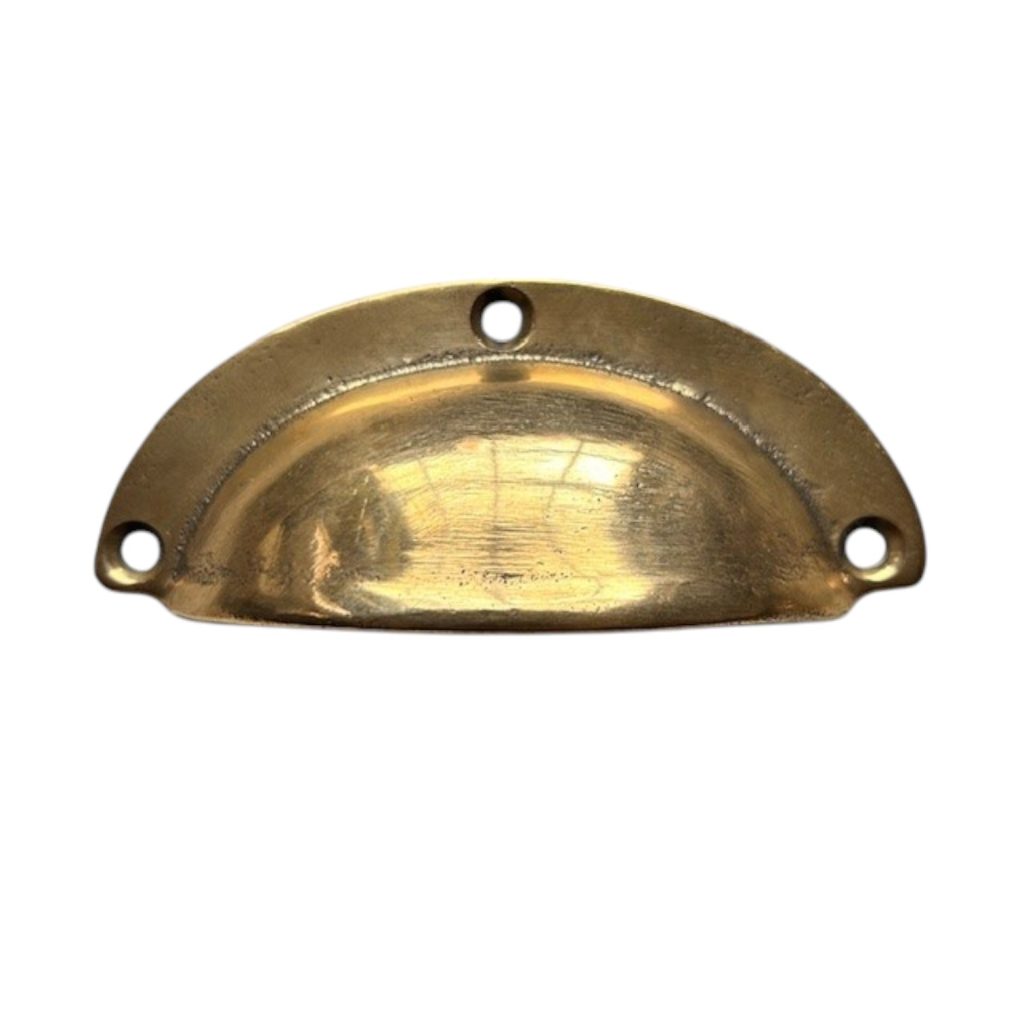 A well-proportioned drawer pull (also known as a cup handle). These drawer pulls are highly polished by hand to a bright finish that brings out the coppery warmth of the bronze. This polished finish is made to order and a longer lead time may be required if we need to order additional stock for you. This product comes with screws.