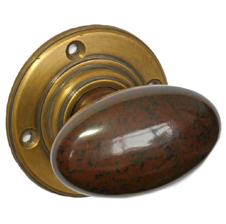 Bakelite Smooth Oval Door Knob – Mottled Brown – Metal Rose