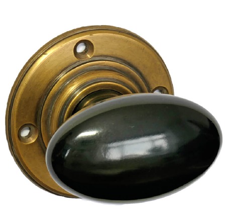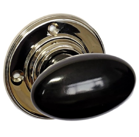Bakelite Smooth Oval Door Knobs – Black  – Metal Rose