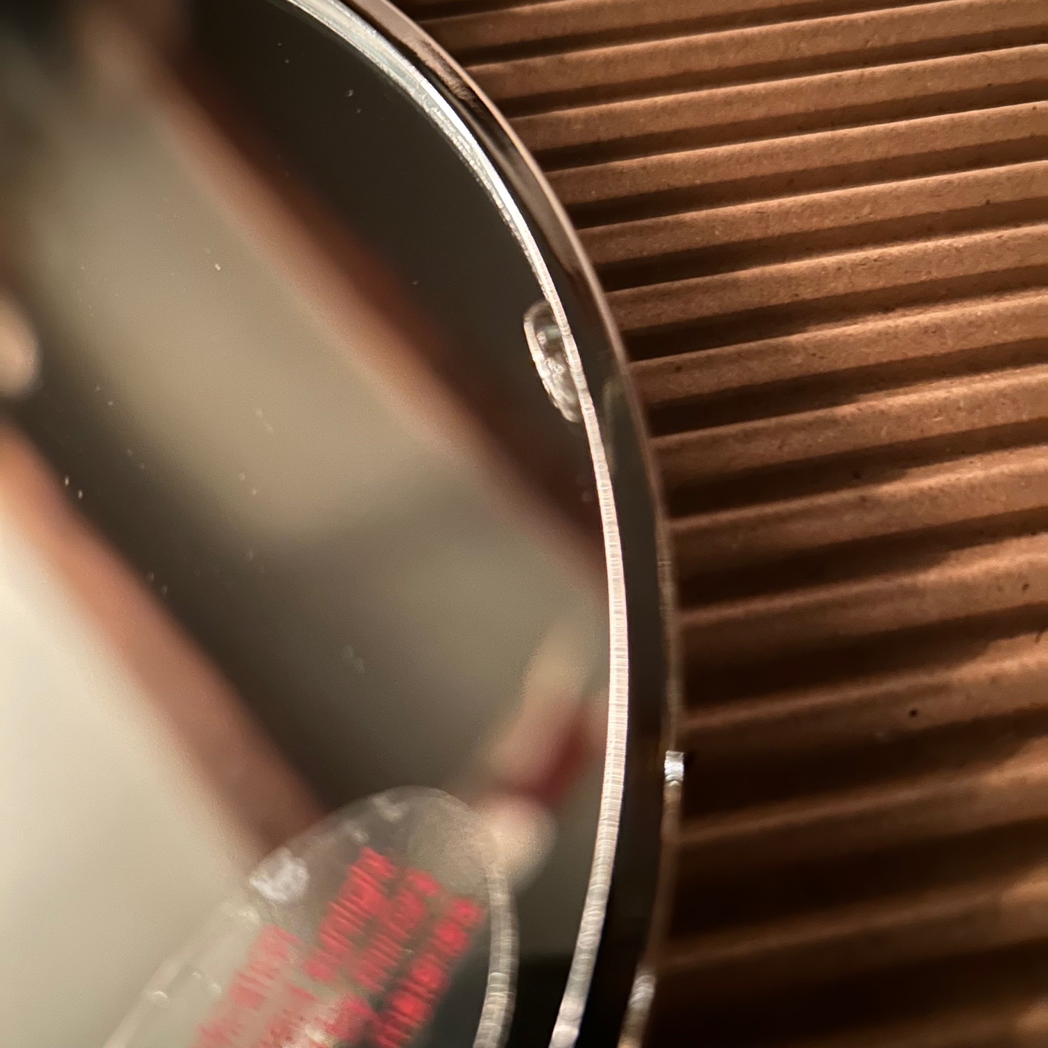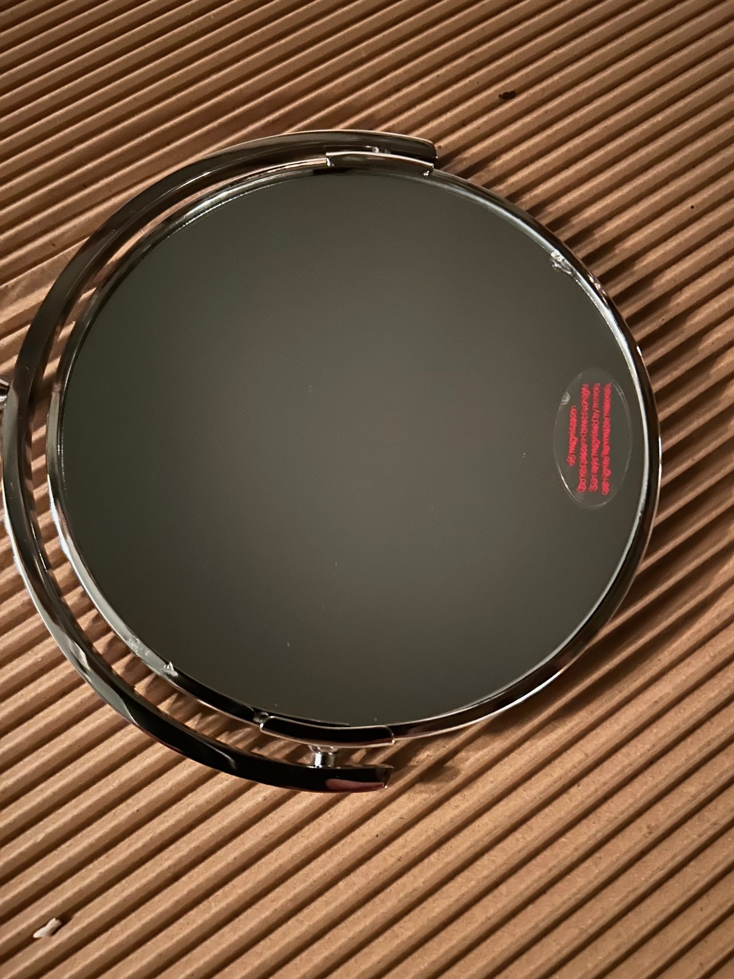 This item is ex-display and has been significantly reduced in price. A small chip is present on the outer edge of the mirror on the 5x magnification side. This was previously unnoticed as the mirror was displayed with the standard side facing out. The chip does not affect the usability of the mirror.